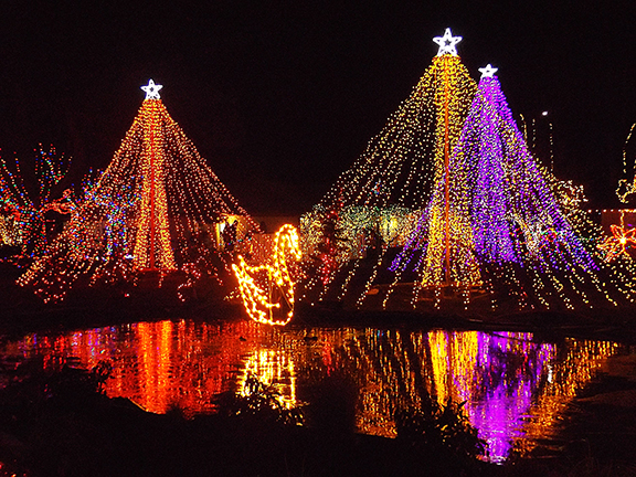 Posing for a photo near the entrance to The Lights of Christmas displays (photo by Cheryl Landes)