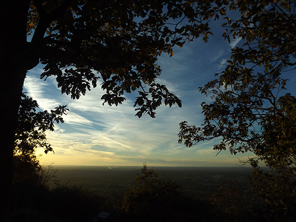 There’s also a 1.4-mile paved road to the top of the mountain. Late one afternoon while in Kennesaw to work for a client, I drove to the top of the mountain to watch the sunset. Today’s armchair photo has pictures of the bright colors I enjoyed. I was also lucky enough to see a hazy view of Atlanta in the distance.