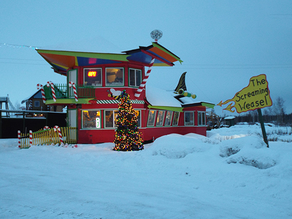 The Screaming Weasel gift shop in North Pole, Alaska, one of the 55 magical Christmas towns on Country Living Magazine’s list (photo by Cheryl Landes)