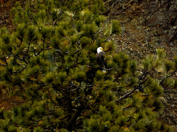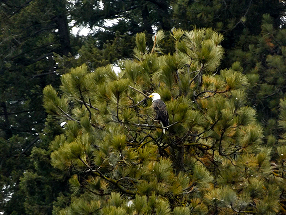 Lake Coeur d’Alene Cruises offers two-hour trips from the the Coeur d’Alene Resort to Wolf Lodge Bay during peak viewing season. During my trip, a biologist gave us an introduction to the eagles and their behavior. Whenever he saw eagles perched in the pines along the lakeshore, he pointed them out to us, and passengers alerted each other to their sightings.