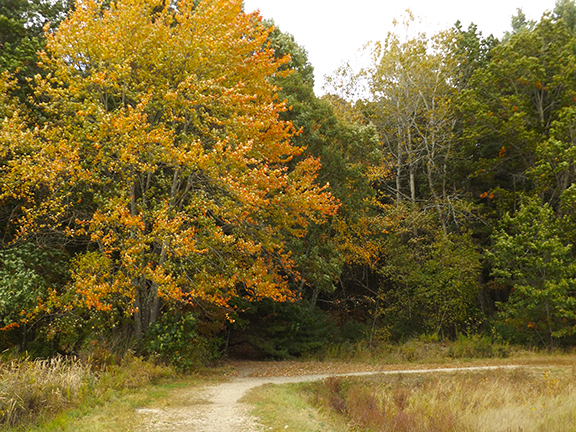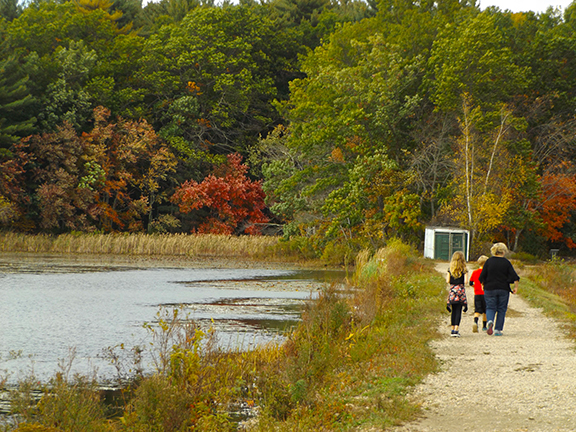 My favorite time to walk here is in the fall. I love walking past the trees brilliant with yellow, red, and orange leaves.