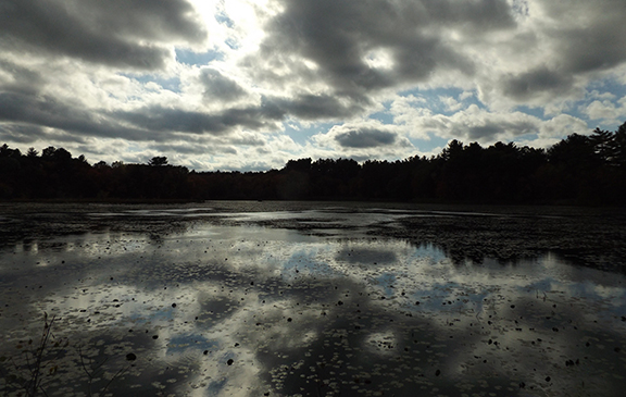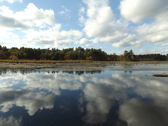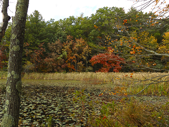 The Carlisle Cranberry Bog in Carlisle, Massachusetts, is a pleasant place to go for a walk any time of year. It’s also a nice place for snowshoeing in the winter. The trails, which are the roads and dike tops of this 151-acre working farm, are flat and easy to navigate.