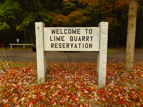 The Lime Quarry Reservation is located at 151 Littleton Road in Chelmsford. The entrance is easy to miss, because the sign is parallel with the road.