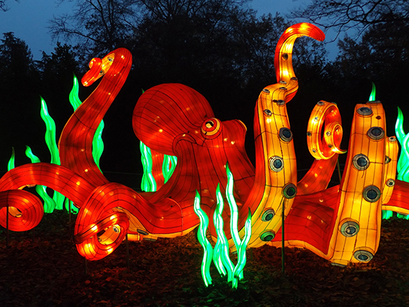 The Woodland Park Zoo’s new WildLanterns exhibit has been a hit this year. When I bought a ticket shortly after the event opened on November 13, they were selling fast. I checked again tonight, and they’re now sold out.