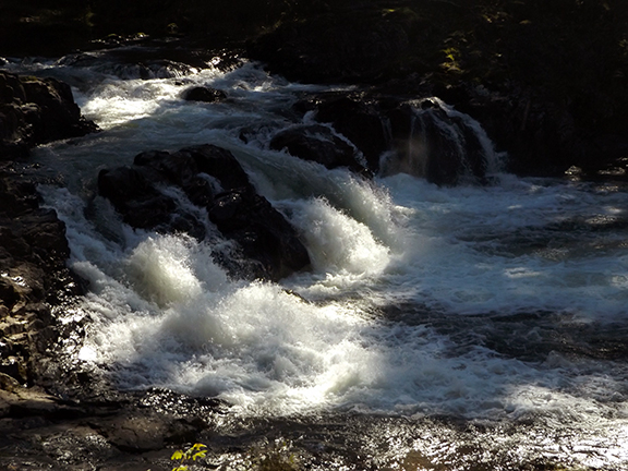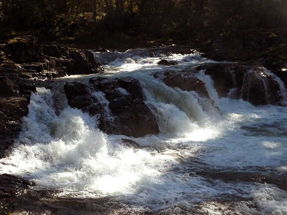 The trail from the parking lot ends at a viewpoint with a picnic bench. It’s a great place to enjoy lunch while watching the falls. Sometimes steelhead jump to the top of the falls.
