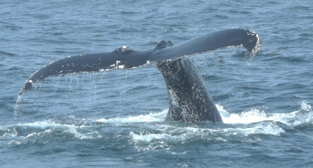 Humpback, right, fin, and minke whales are the most common whales spotted in the sanctuary. White-sided dolphins often hang out near the whales. Sometimes seals are seen as well.