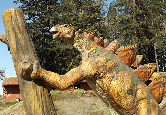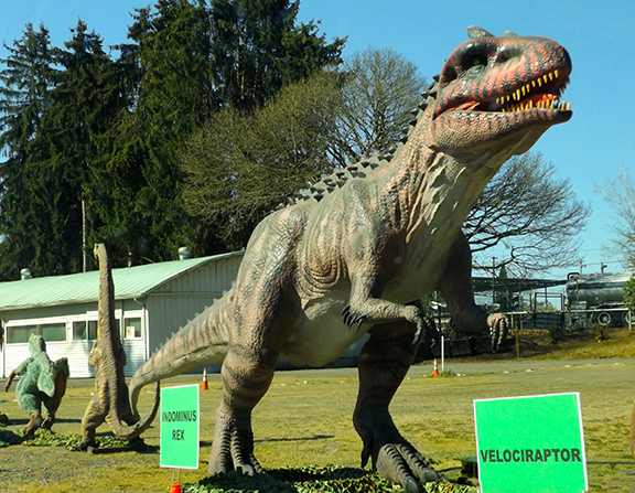 We drove through the event in Canby, Oregon, on Sunday, April 18. The event is designed for kids, but adults who are big kids at heart enjoyed it as well. (My mother and I were among them.) The dinosaurs are life-size and are displayed on the passenger side of the route so that the kids can get a good look at all of the creatures. The exhibit includes adult dinosaurs and babies, such a T-Rex and triceratops hatching from their eggs, along with two Sabertooth tigers.