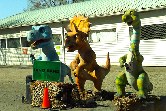 The drive-through ends with a three-member Dino Band playing Reggae music.