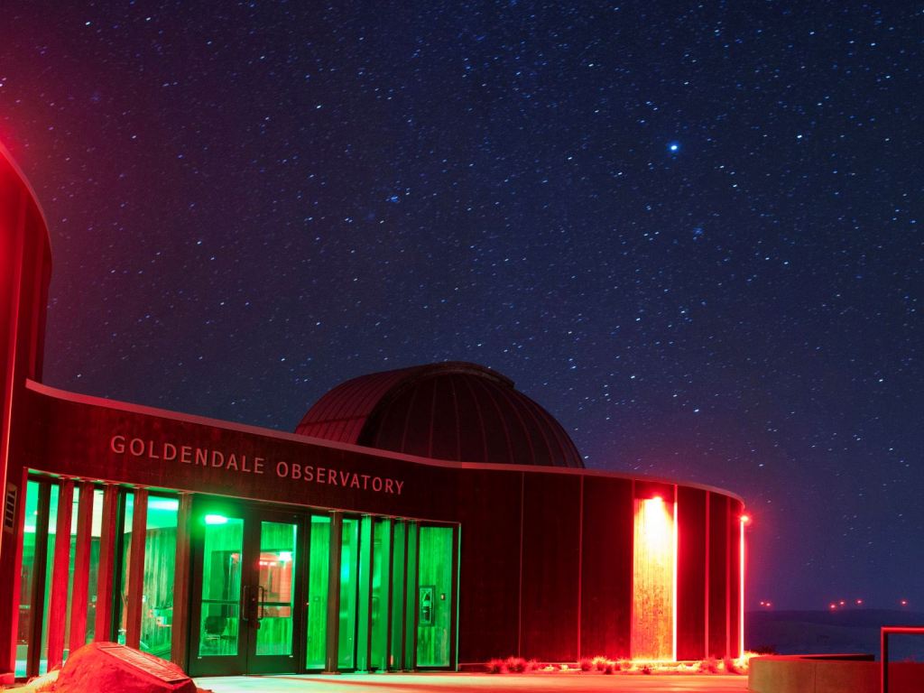 The observatory is located two miles north of Glendale, in Southcentral Washington. Get more information and make reservations for tours at parks.state.wa.us/512/Goldendale-Observatory.