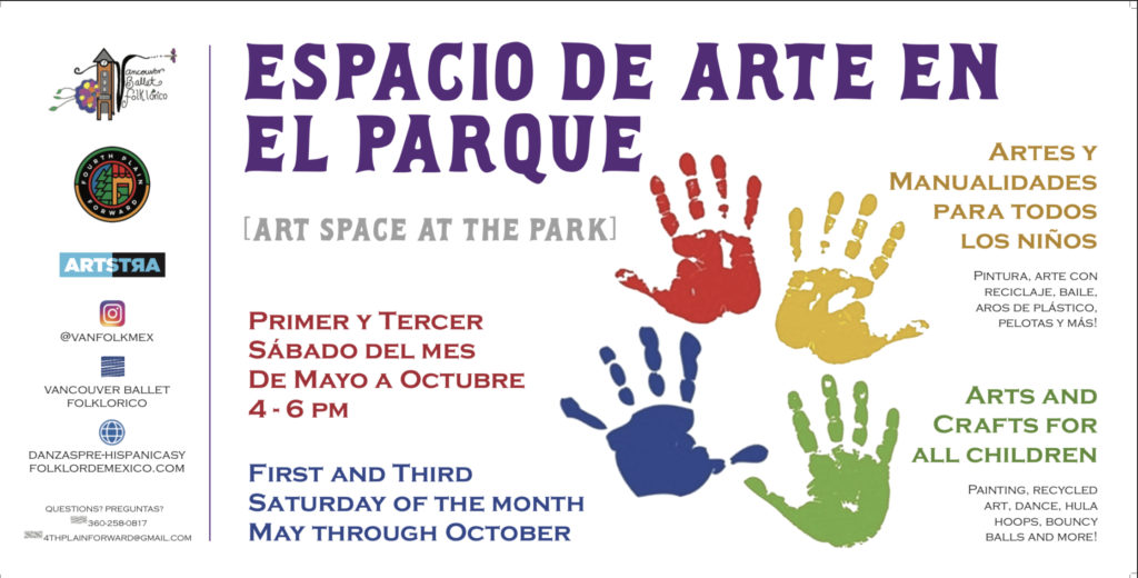 On the first the third Saturdays of the month from 4 p.m. until 6 p.m., Vancouver Ballet Folklórico, a traditional Mexican folk dance group, hosts ¡Espacio de Arte en el Parque! (Art Space in the Park!) in collaboration with ARTSTRA, and Fourth Plain Forward.